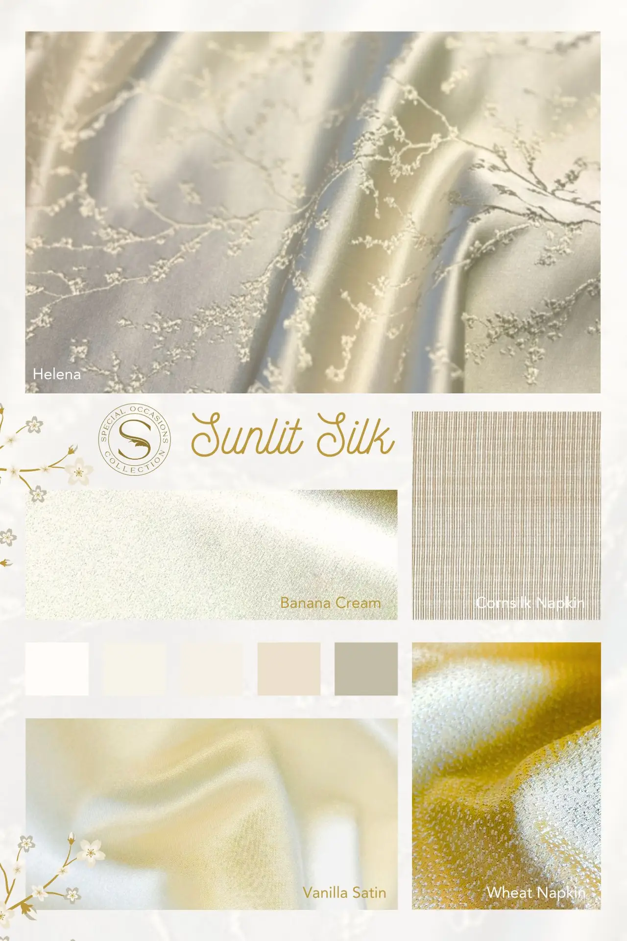 Explore curated mood boards featuring stunning fabric combinations. From classic to contemporary, discover endless inspiration for your special occasion. Contact us to bring your vision to life!