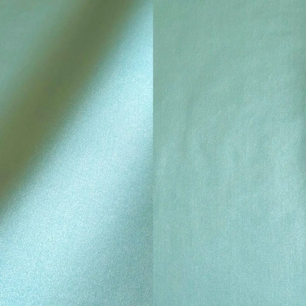 Seafoam blue satin tablecloth and runner.